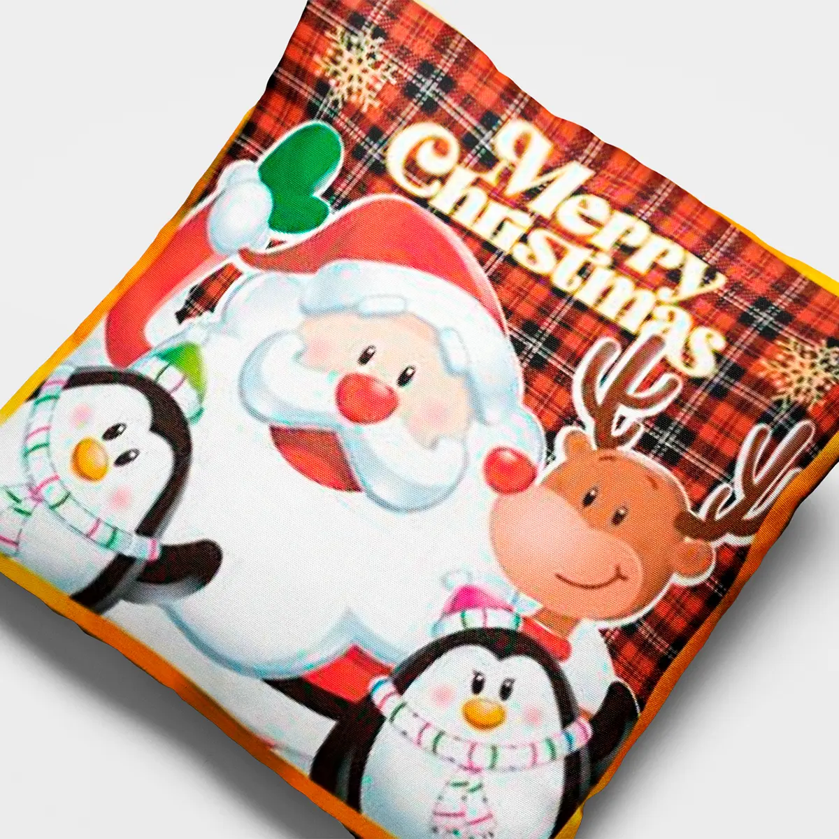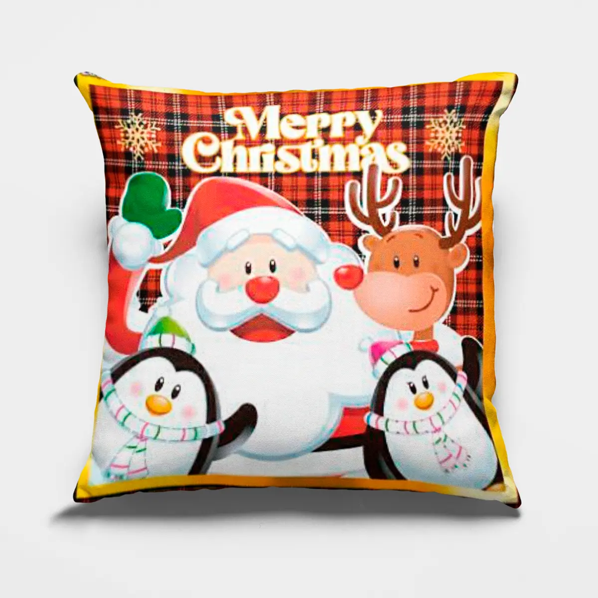 Celebra la alegría de la Navidad con el Cojín Navideño Merry Christmas, Edición 2024. Con un elegante diseño que incluye el clásico mensaje «Merry Christmas», este cojín de 45×45 cm es perfecto para darle un toque festivo a tu hogar. Hecho con materiales de alta calidad, combina estilo y comodidad, convirtiéndolo en un elemento decorativo esencial para la temporada.
