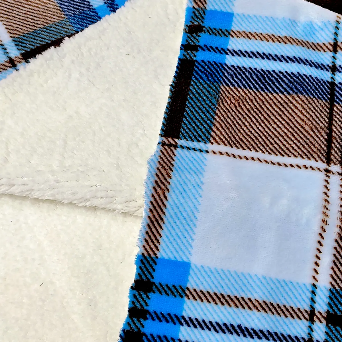 Rollo de Tela Polar Borrega Alaska Cuadros Perú 150 cm ancho – Azul y Café